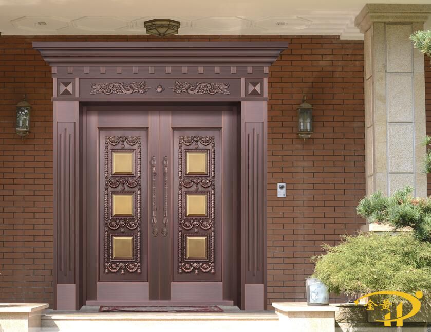 本款別墅豪華銅門,型號是M-9078,門面采用整板模壓工藝,原材料為洛陽純紫銅或黃銅制作而成。 注意:羅馬柱、門頭高度、墻體厚和門柱寬度可根據客戶實際要求量身定制。