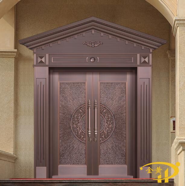 豪華別墅整板模壓對(duì)開(kāi)純銅門(mén)