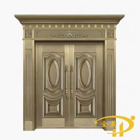 本款高端別墅門,型號是M-9027,門面采用精雕木紋工藝,原材料為洛陽純紫銅或黃銅制作而成。 注意:羅馬柱、門頭高度、墻體厚和門柱寬度可根據客戶實際要求量身定制。