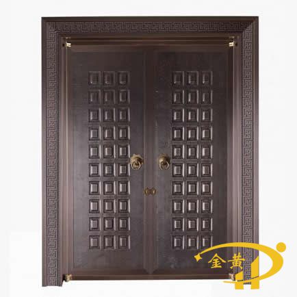 本款豪華別墅雙開門,型號是M-9015,門面采用純銅澆鑄工藝,原材料為洛陽純紫銅或黃銅制作而成。